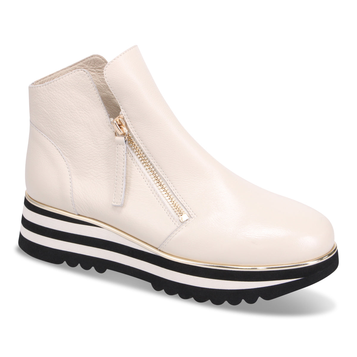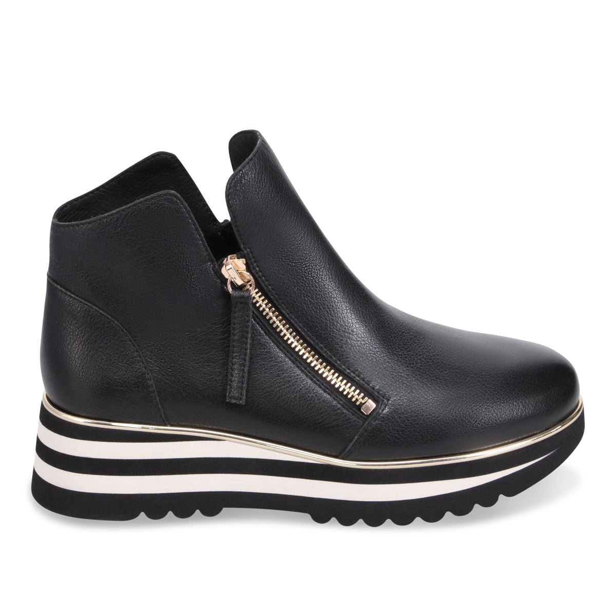 Evol: sleek, simple, and built to stand out. This zip-up boot features a minimalist silhouette elevated by a bold striped platform sole that adds both height and attitude. The angled zipper makes for easy on-and-off, while the cushioned insole ensures all-day wearability. A perfect blend of fashion and function—this is your go-to for everyday edge with effortless polish.