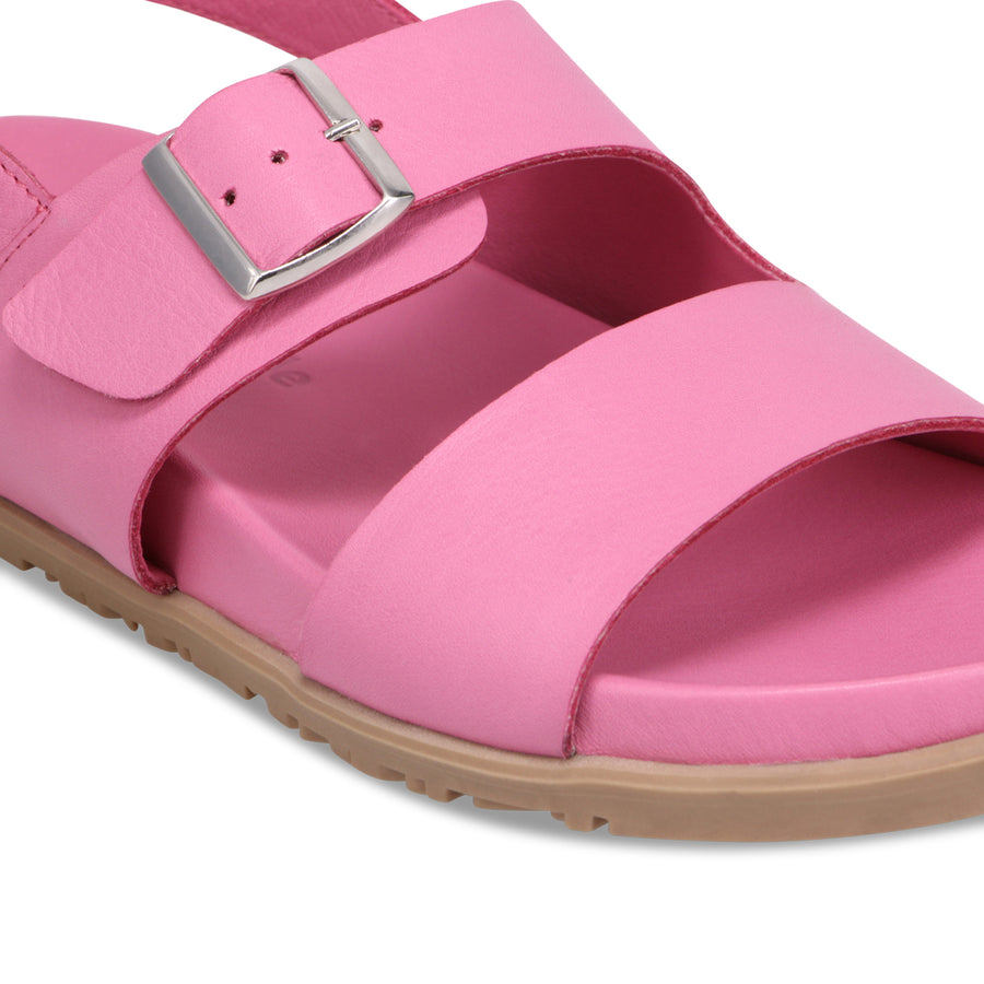 Siera blends laid-back ease with supportive design. Featuring wide, smooth leather straps and an adjustable buckle for a custom fit, it’s made for everyday wear. The slingback design keeps your foot secure, while the contoured footbed adds all-day comfort. Finished with a flexible sole for natural movement, this sandal is perfect for casual outings, weekend adventures, or simply soaking up the sun in style.